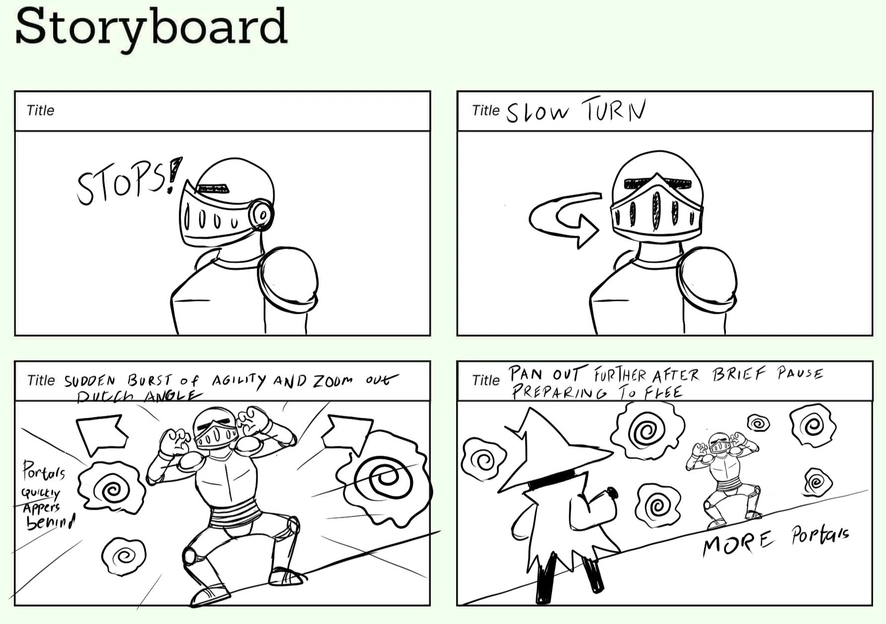 I started out with a crude and simple storyboard to map out the cutscene.Follow by a cinematic to form the timing.Naturally some things changed to let some scenes breath better.