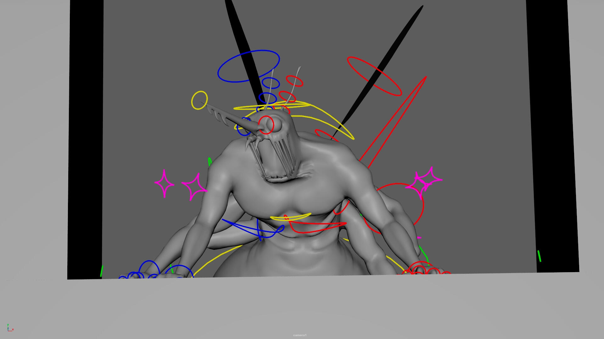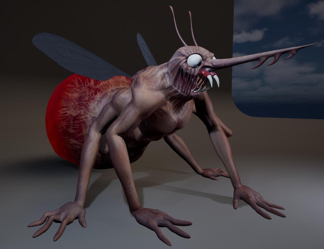 This project started with a storyboard to get the general feel for a monstrous encounter, though much of the original idea was scrapped in favor of demonstrating the creatures size and struggle to fly without a goal or prey.